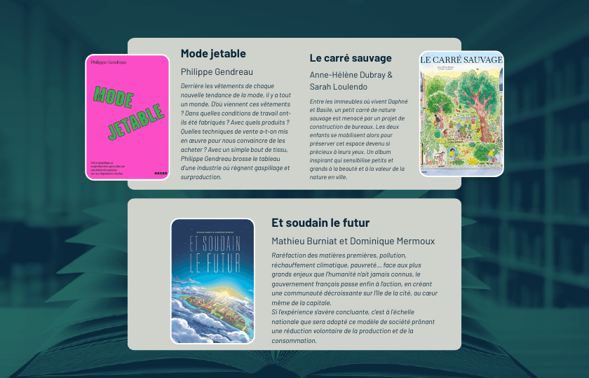 Pour ce début d’année, plongez dans des lectures qui donnent envie d’agir. Dans notre chronique littéraire de janvier, Vanessa Minarro, documentaliste à la Maison de l’Environnement de Lyon, partage trois ouvrages inspirants : un essai pour comprendre et repenser la fast fashion, un livre jeunesse qui invite à découvrir et protéger un petit coin de nature en ville, et une bande dessinée qui imagine un futur alternatif basé sur la sobriété et le collectif.